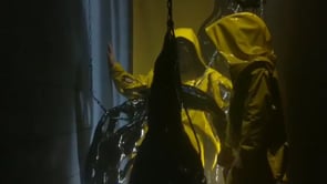 “ The performance peaked with a group of dancers in inflated PVC snoods throwing themselves at each other in a ceremonial and confrontational dance. "